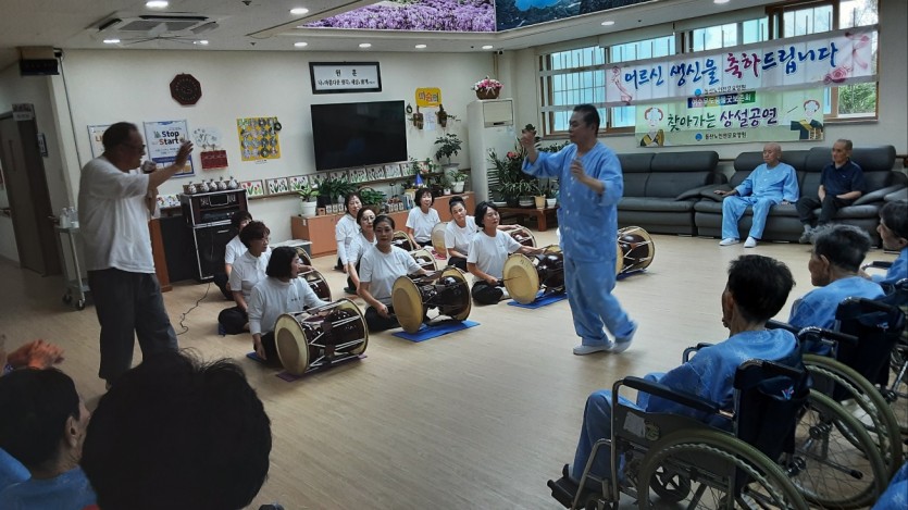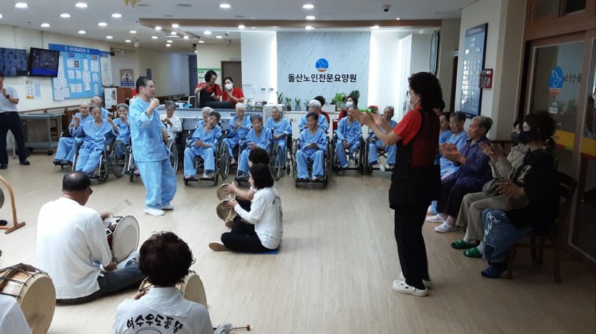 어르신 생신 잔치에 위문 공연 팀이 함께 참여하여 흥겨운 노래와 춤으로 즐거운 시간을 만들어 드렸어요. 공연을 보시며 어르신들께서 춤과 환한 미소로 박수를 보내며 즐겁게 참여하셨고, 축하의 분위기 속에 따뜻한 감동이 더해졌답니다.