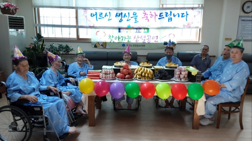 어르신들은 북과 장구 소리에 맞춰 손뼉을 치며 흥겹게 공연을 관람하셨고, 몇몇 어르신들은 자리에서 일어나 춤을 추시며 적극적인 모습을 보여주셨어요. 공연 후 이어진 축하 시간에는 생신을 맞으신 어르신들께 직원과 입소 어르신 모두가 축하 인사를 전하며 따뜻한 분위기를 함께 나눴죠! 생신 잔치는 정서적 안정과 소속감을 높이고, 즐거운 문화 체험의 기회를 제공한 뜻 깊은 시간이 되었답니다. 앞으로도 어르신들께 기쁨과 감동을 드릴 수 있는 다양한 프로그램과 함께 생신 잔치를 이어가고자 합니다.